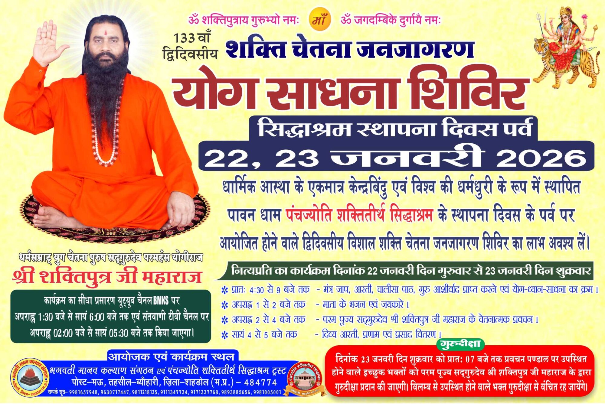 बिलासपुर, छत्तीसगढ़ में दिनांक 10-11 फरवरी को शक्ति चेतना जनजागरण शिविर का विशाल आयोजन