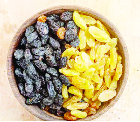 किशमिश : अंगूर से बनने वाली किशमिश में कैलोरी ज़्यादा होती है, 100 ग्राम किशमिश में करीब 300 कैलोरी होती है। किशमिश में बी-कॉम्प्लेक्स विटामिनों के साथ नेचुरल शुगर की मात्रा भी अधिक होती है। किशमिश में आयरन, पोटैशियम के साथ फाइबर भी अच्छी मात्रा में होता है, ऐसे में ये डाइजेशन के लिए भी बेहतर है।