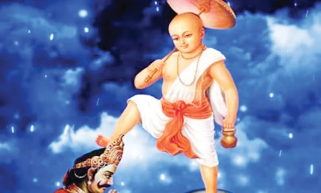 कथा के अनुसार, भगवान् विष्णु ने इन्द्र का देवलोक में अधिकार पुन: स्थापित करने के लिए यह अवतार लिया, क्योंकि देवलोक को असुर राजा बलि ने हड़प लिया था। बलि विरोचन के पुत्र तथा विष्णु भक्त प्रह्लाद के पौत्र थे और एक दयालु असुर राजा के रूप में जाने जाते थे। यह भी कहा जाता है कि अपनी तपस्या तथा शक्ति के माध्यम से बलि ने त्रिलोक पर अधिपत्य पा लिया था।