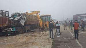 भिड़े चार ट्रक-जनरथ बस और कार, दो की मौत,16 घायल