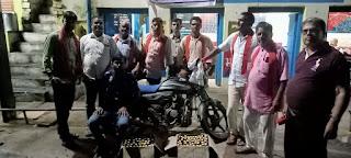 इसी क्रम में, दिनांक 12 अगस्त को सायंकाल 09:00 बजे दमोह जि़ले के हिण्डोरिया थाने की चौकी बांदकपुर अन्तर्गत बम्हौरी स्टेशन के पास दो पेटी देशी मसाला शराब पकड़ी गई। आरोपी हेमराज राठौर पुत्र नत्थू राठौर, निवासी ग्राम-हलगज होण्डा साइन मोटरसाइकिल क्रमांक-एमपी 34, एमएल/9101 से शराब लेजा रहा था।